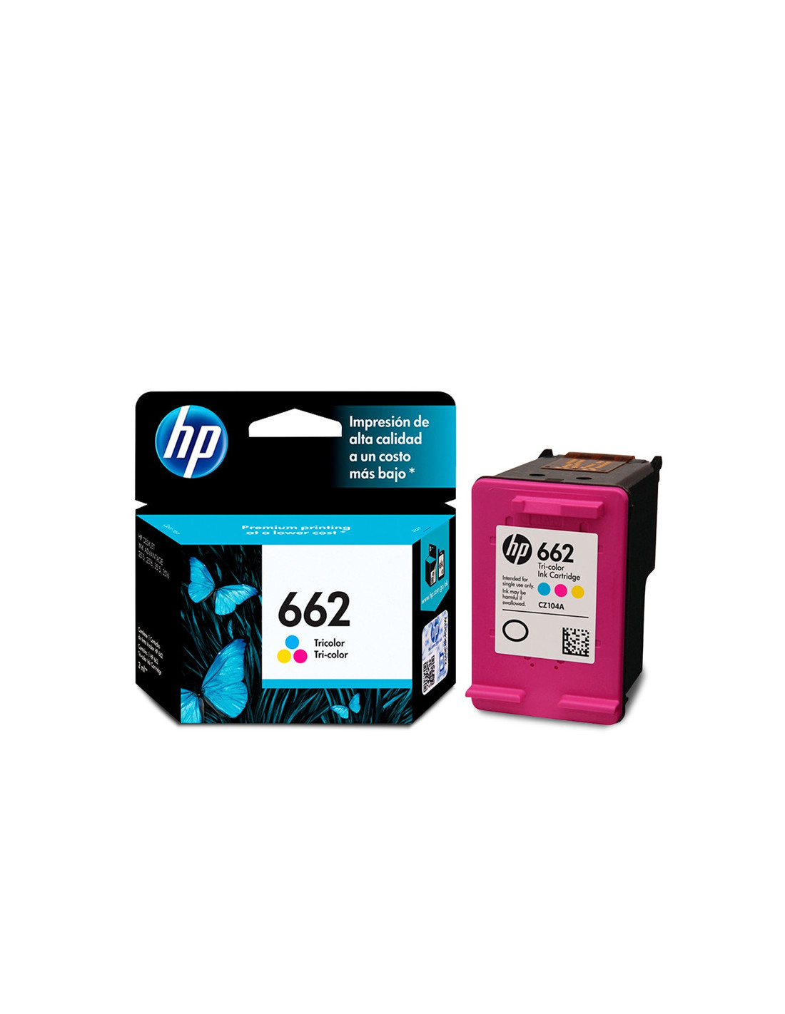 Cartucho de tinta tri-color estándar marca HP.