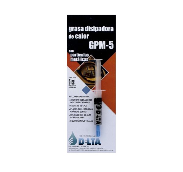 La grasa disipadora de calor con partículas metálicas, permite transferir eficientemente la energía desde el microprocesador u otro componente a su disipador marca Electroquimica Delta.