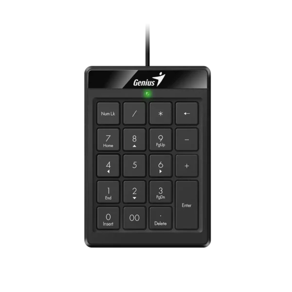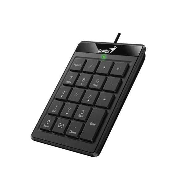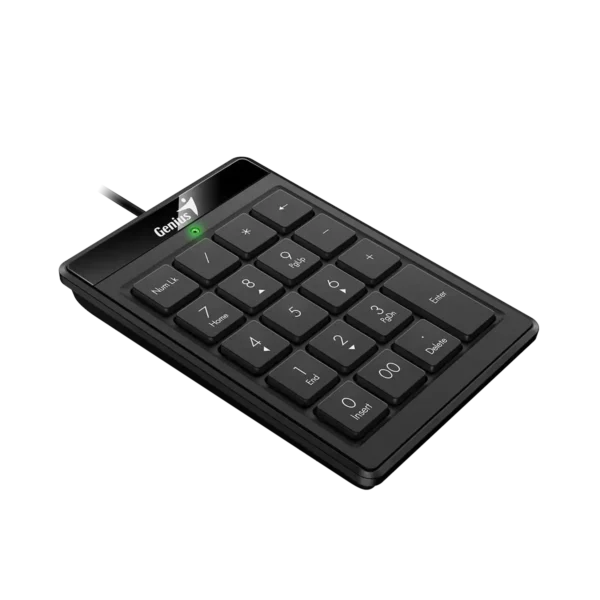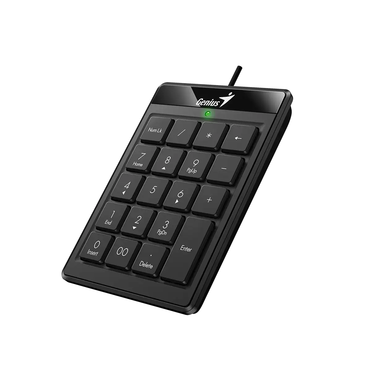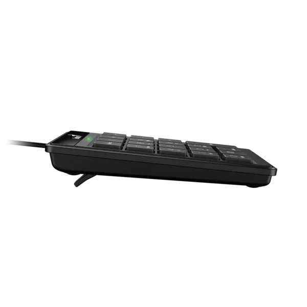 19 teclas, 0 al 9, doble 0, num block, teclas para funciones de calculo ( *, /, – y +), delete, enter y back.